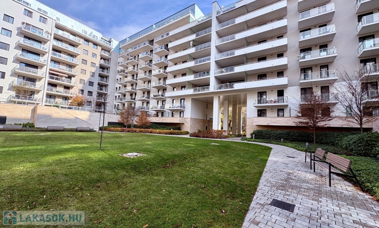 Az elegáns, két lifttel is rendelkező társasházhoz egy belső, gyönyörűen parkosított, több pihenőrésszel kialakított, beállt növényzettel rendelkező kert is tartozik.