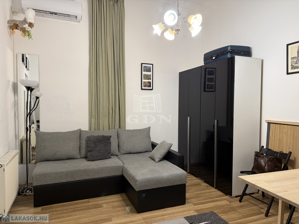 A lakás folyamatosan karbantartott, azonnal költözhető, teljes berendezéssel és gépesítéssel együtt eladó. A tulajdoni lap szerint 23 nm, a valós alapterület 33 nm. A hálószoba a korábbi lichthofból lett kialakítva, ablakos, jól használható külön szoba.