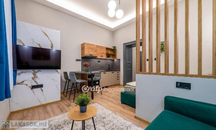 A vételár tartalmazza a gépesített konyhát és a lakás teljes berendezését, a kiegészítőkkel együtt, így akár azonnal költözhető vagy kiadható.