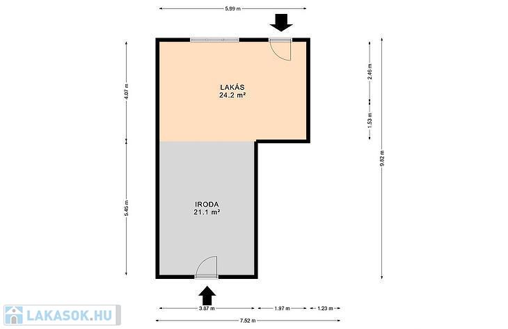 Eladó Tátra utcában egy összességében 45 nm-es ingatlan, amely két helyrajzi számmal rendelkezik: egy utcáról nyíló üzlethelyiségből és egy külön kis lakásból áll, így többféle hasznosítási lehetőséget kínál. Az utcai bejáratú üzlethelyiség 21 nm-es, keleti tájolású, közvetlenül alatta egy 38 nm-es pince található, amely kiválóan alkalmas tárolásra vagy akár egyéb funkciók kialakítására. Az üzlethez tartozik egy belső udvarról megközelíthető toalett és egy kisebb tároló is. A lakás 24 nm-es, nyugati fekvésű, csendes belső udvarra néz, így nyugodt lakókörnyezetet biztosít. Az ingatlanok állapota közepes, igény szerint felújíthatók, saját elképzelésre alakíthatók. A fűtést gázkonvektor biztosítja. Az ingatlan kizárólag egyben eladó, ideális lehet vállalkozás és lakhatás kombinációjára vagy befektetési célra is. Elhelyezkedés szempontjából néhány perc sétára található a Westend és a Szent István körút. A közelben elérhető az M3-as metró, valamint a 4-6 villamos és számos buszjárat. Kérdés vagy megtekintési szándék esetén keressen bizalommal. Ügyfeleink részére díjmentes bankfüggetlen hitelügyintézést tudunk kínálni.