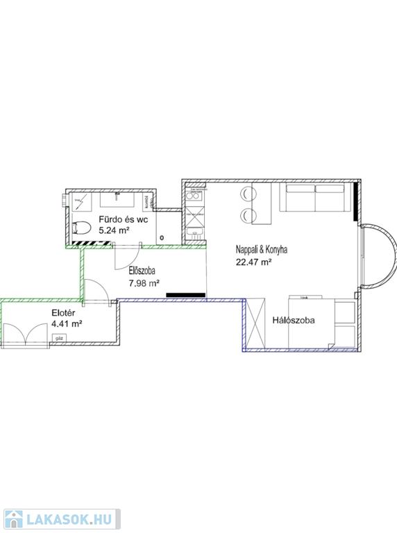 • Világos, napfényes elrendezés, nappali + hálórész