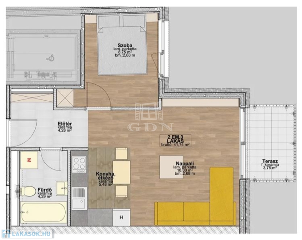2. emelet – 41 m2 - 2 szoba – 4 m2 erkély – ELÉRHETŐ