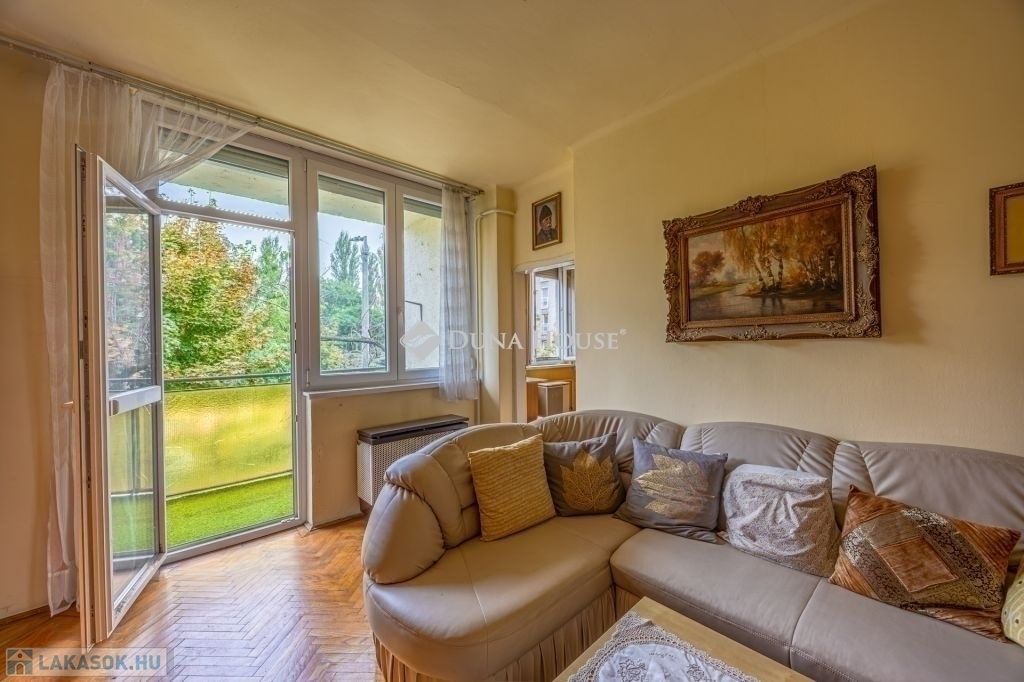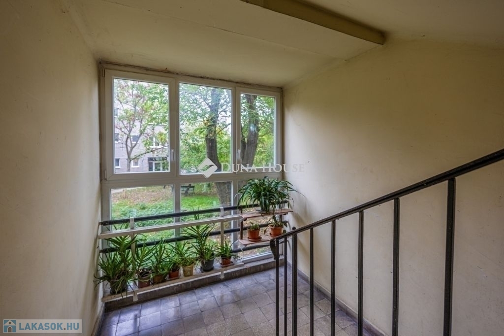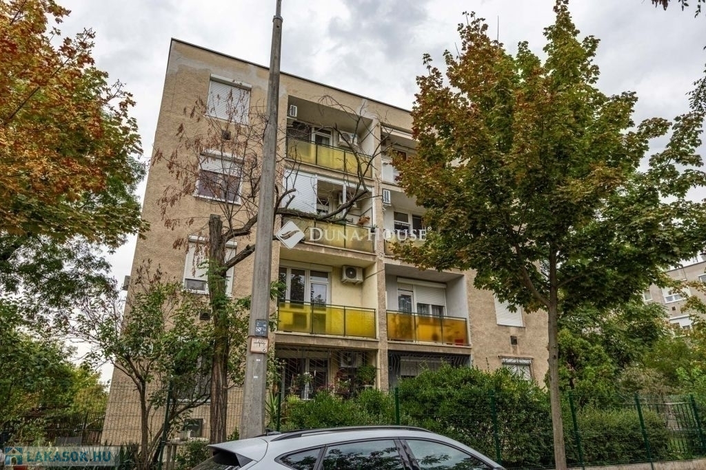 Angyalföld zöldövezeti részén, a Keszkenő utca és a Szent László út sarkán eladó egy 1. emeleti, 51 m²-es, loggiás, kelet–délkeleti tájolású, világos 2 szobás saroklakás.