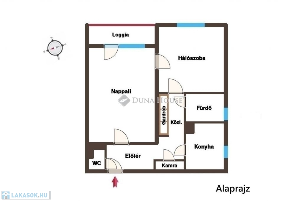 Szinte minden helyisége ablakos, zöldre néző, a loggia parkosított játszótérre tekint. A lakás praktikus, körbejárható elrendezésű: 18 m²-es nappali, 12,57 m²-es hálószoba, nagy konyha, külön WC, tágas előtér, kamra és bőséges tárolókapacitás.