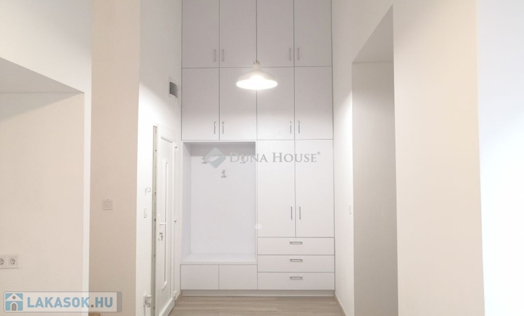 FRISSEN, TELJES KÖRBEN, BELSŐÉPÍTÉSZ TERVEI SZERINT FELÚJÍTOTT, AZONNAL BIRTOKBAVEHETŐ APARTMAN A VÍGSZÍNHÁZ KÖZVETLEN KÖZELÉBEN! XIII. kerület, Újlipótvárosban, a Vígszínháztól mindössze 80 lépésnyire, szép állapotú, egyedi hangulatú polgári társasházban eladó egy félemeleti, zöld kertre néző, kifejezetten világos, 44m2 lakóteret kínáló, nappali + hálóhelyiséges, frissen felújított, belsőépítész tervei szerint átalakított, akár azonnal birtokba vehető apartman. Az ingatlan felújítása során nagy belmagasságát helyenként extra szint kialakításával használták ki. Tágas, amerikai konyhás nappalijából ennek köszönhetően egész szobányi hálóhelyiség nyílik, a galériaszinten, ahol a belmagasság szintén lehetővé teszi, hogy normál hálóhelyiségként használjuk. A már megnevezett helyiségeken kívül tágas fürdőszoba+wc, egy egész falnyi beépített gardróbbal felszerelt előszoba, és a nappaliból nyíló étkezősarok találhatóak még a lakótérben. A bejárat előtt egy kifejezetten praktikus, zárt előtér található, ahol egy hatalmas beépített szekrény is megtalálható, kulturált, rendezett tárolási lehetőséget biztosítva az ingatlant használók számára, akár kerékpár, roller biztonságos parkolására is alkalmas. A helyiség mosókonyhaként is hasznosítható, melyhez mosógépkiállás és mosógép is telepítésre került.  Állapotát tekintve az ingatlan teljesen felújított, újszerű állapotban van, a felújítás óta még senki sem használta, új tulajdonosa is ebben az állapotában veheti birtokba. A felújítás során szó szerint mindent kicseréltek a lakótérben, műszaki és esztétikai szempontból egyaránt. A felszereltséget a teljes gépesítésű (sütő, főzőlap, elszívó, mosogatókép, hűtőszekrény) konyhabútor mellett hatalmas beépített gardrób szekrények, dupla kapacitású radiátorok, hűtő-fűtő klímaberendezés, a galériaszinten kilakított beépített gardrób is emelik. A fűtést és a melegvíz ellátást elektromos cirkó biztosítja, mely szintén újonnan lett felszerelve. A nappali hatalmas ablakfelülettel rendelkezik, melynek köszönhetően kifejezetten világos. Amennyiben mégis árnyas környezetre vágyunk, a nyílászáró elektromos redőnnyel is fel lett szerelve, így az optimális fényviszony gombnyomásra beállítható. A társasház tiszta, rendezett, kívül-belül szép állapotak örvend. Számos műszaki felújítás is megvalósult az épületben. A lakóközösség kiváló, a közös területeket tisztán és rendben tartják. A környezet ellátottsága kitűnő, üzletek, oktatási intézmények, szolgáltatások, kikapcsolódási, sportolási lehetőségek karnyújtásnyira találhatóak. A Vígszínház mindössze 80 lépésnyire, a Westend bevásárlóközpont pár perc sétányira található. A tömegközlekedés szintén kitűnő, a közeli Jászai Mari térről és Nyugatiból többek között az M3 metró, a 4-6-os villamos, 2-es villamos, és számtalan autóbusz, trolijárat biztosít a város szinte minden pontjával könnyű összeköttetést. Irányár: 79,9 M Ft