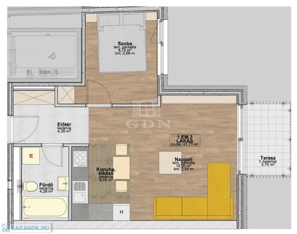 1. emelet – 40 m2 - 2 szoba – 4 m2 erkély – ELÉRHETŐ