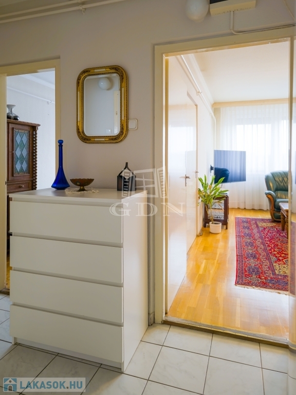 A lakás világos, csendes, és a magas emeletnek köszönhetően gyönyörű kilátás nyílik a budai hegyekre.
