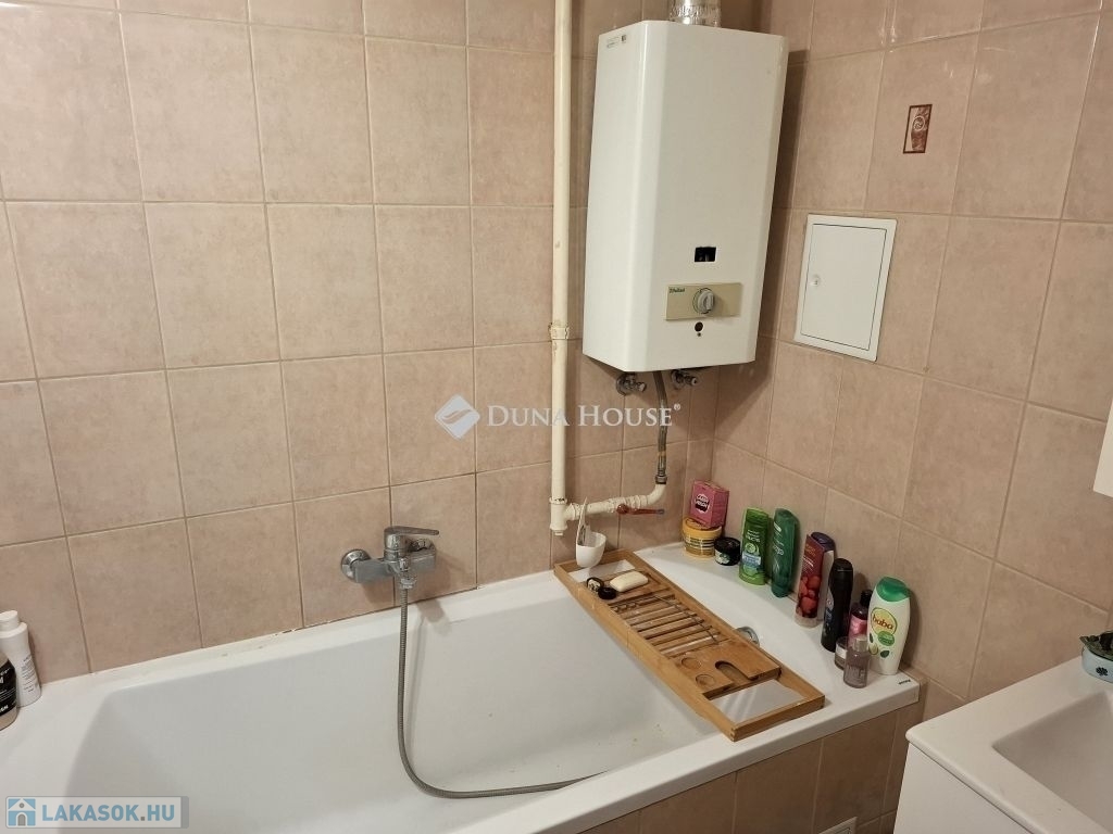 A konyhában kényelmesen elfér az étkező, az ablaknak köszönhetően ez a helyiség is világos és könnyen szellőztethető. A fürdőszobában fürdőkád van. Korábban rendelő is működött a lakásban, ezért két WC van. Távfűtés biztosítja a fűtést.