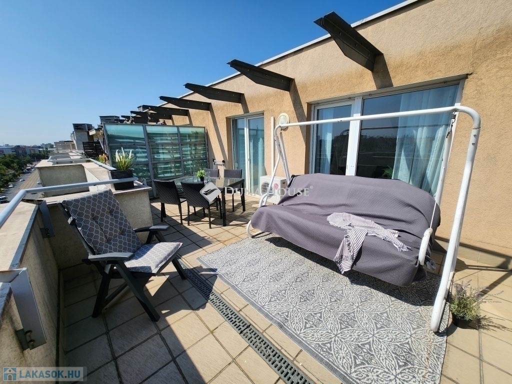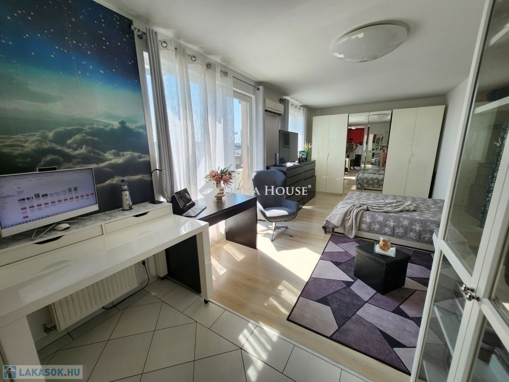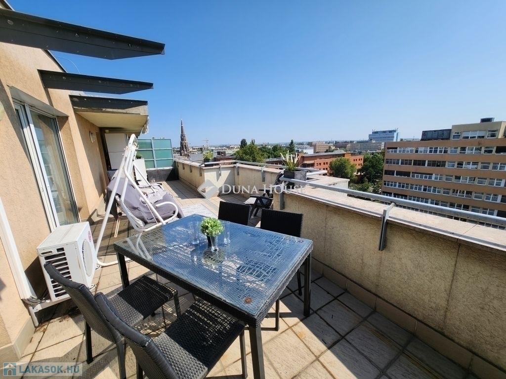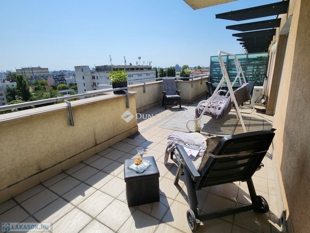 Modern, különleges penthouse lakás a 13. kerületben, - 180°-os panorámával és kiváló közlekedéssel!Eladásra kínálunk egy bruttó 72 m²-es, keleti tájolású, 8. emeleti penthouse lakást Budapest XIII. kerületében, a Lehel út centrumában, a Béke téren.Az ingatlanból lenyűgöző 180°-os panoráma tárul elénk, amely napfényes és tágas térélményt biztosít.Főbb jellemzők:-Penthouse jelleg, 180°-os panorámával, tágas terasszal- Keleti tájolás napfényes belső terek- Kiváló közlekedés: busz, villamos megállók az épület előtt- A lakás nettó 39 nm-es, a terasz 33 nm, tulajdoni lapon 55 nm!A modern elrendezésű, világos otthon B energetikai besorolással rendelkezik, így rezsiköltsége alacsony.Az ingatlan a képeken látható bútorokkal együtt eladó.A lakóközösség csendes és barátságos, így garantáltak a nyugodt és kellemes mindennapok.Az ingatlan az első otthonvásárlást támogató program keretében 3%-os kamatozású hitellel is megvásárolható, így kiemelkedő lehetőséget nyújt azoknak, akik saját, prémium otthont keresnek kedvező feltételekkel.Ez a lakás ideális választás mindazok számára, akik értékelik a modern városi életstílust, a panorámát és a kiváló közlekedést.