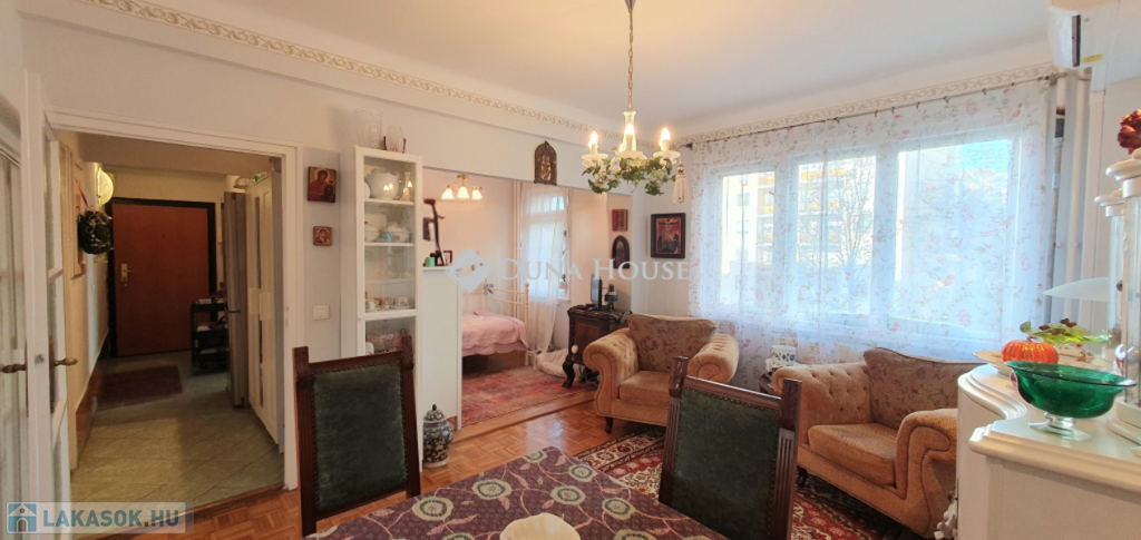 remek lokáció minden, ami egy városi otthonhoz kell!A XIII. kerület egyik legkedveltebb részén, a Göncz Árpád városközpont közelében eladó ez a 61 m²-es, klímás lakás egy 8 emeletes, rendezett, liftes társasház 3. emeletén.Eredetileg 3 szobás, jelenleg 2 szobássá alakított, de egy válaszfal visszaállításával könnyedén újra háromszobás otthonná tehető így tökéletes választás fiatal pároknak, családoknak vagy befektetőknek is.A déli és keleti tájolásnak köszönhetően a lakás egész nap világos és napfényes, a tágas loggia pedig ideális hely a reggeli kávéhoz vagy esti kikapcsolódáshoz.A praktikus alaprajz és a jó állapot gyors beköltözést tesz lehetővé.Főbb jellemzők:61 m²-es, eredetileg 3 szobás (könnyen visszaalakítható)Napfényes, déli és keleti tájolásTágas, világos loggiaKülön fürdő és WCKamra és klímaJó állapotú, rendezett, liftes ház3. emeleti elhelyezkedés kényelmes, mégis csendesA bútorok megegyezés szerint maradhatnak, igény esetén a lakás kiürítve kerül átadásra.Kiváló lokáció, minden karnyújtásnyira:A környék kivételesen jól ellátott a Göncz Árpád városközpont pár perc séta, ahol megtalálható az M3-as metró, villamos- és buszjáratok, valamint számos irodaház, étterem, kávézó és bevásárlási lehetőség.A Duna-part, a Margitsziget és több zöld park is rövid sétával elérhető, így a városi élet és a természet közelsége egyszerre élvezhető.Ha egy világos, jól elhelyezkedő, értékálló otthont keres, ne hagyja ki ezt a lehetőséget!