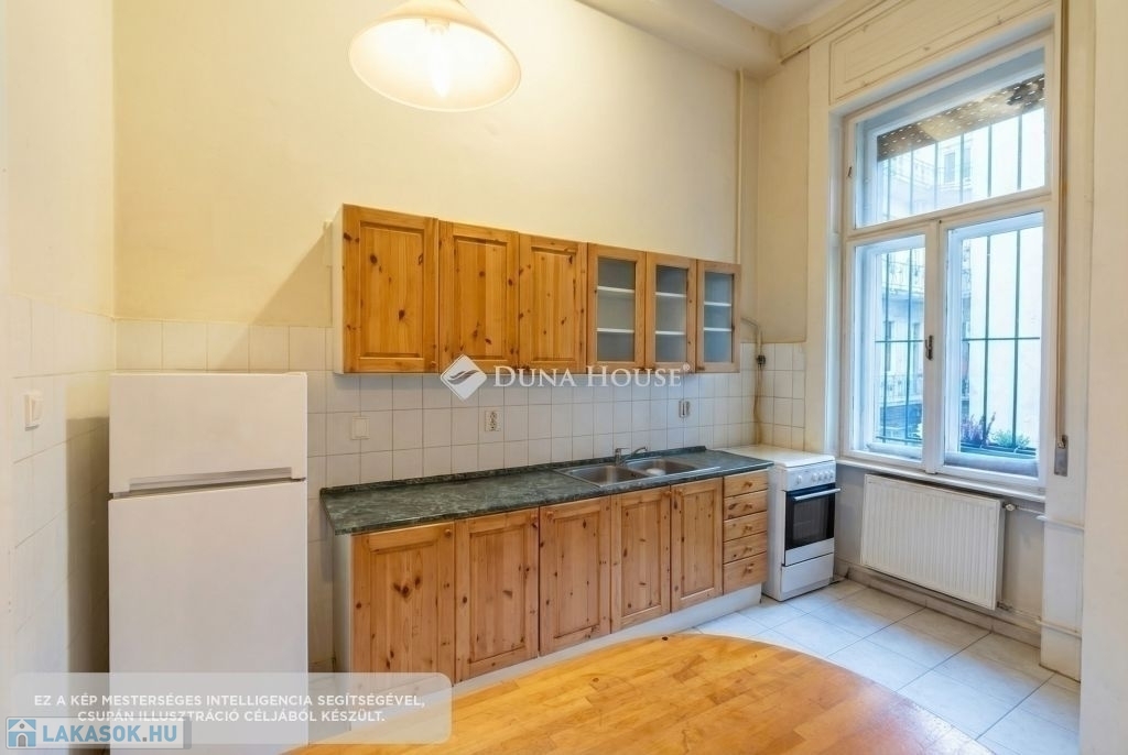 A Vígszínháztól és a Duna-parttól mindössze 5 perc sétára kínálunk megvételre egy 66 m²-es, 2. emeleti, liftes, rendezett társasházban található lakást.Lakás jellemzői66 m² alapterület, 3,8 méteres belmagasság rendkívül tágas terekDéli tájolású, világos lakásNagyméretű nappali 8 m²-es galériával, konyhaétkezővelGázcirkó fűtés és légkondicionálóIgény szerint könnyen 2 szobássá alakíthatóDupla üvegezésű, felújított fa nyílászárókA lakás kb. 10 éve teljes körű felújításon esett át, mely során megújultak a nyílászárók, a burkolatok, a villamos- és gázhálózat, kialakításra került a cirkófűtés, a klíma és a galéria is.Beköltözhető állapotú, jelenleg bérlők lakják.A belvárosi elhelyezkedés ellenére a lakás kifejezetten csendes, ablakai a kevésbé forgalmas Katona József utcára és a belső udvarra néznek.Műszaki és pénzügyi adatokKözös költség: 27.000 Ft/hóÁtlagos rezsi 2 fő részére: kb. 15.000 Ft/hóTehermentesMegfelel a 3%-os támogatott hitel feltételeinekTársasházA 1900-as évek elején épült, szecessziós stílusú, rendezett társasház stabil anyagi háttérrel rendelkezik.Az elmúlt időszakban megtörtént:homlokzat felújításaelektromos- és gázhálózat cseréjelift felújításaA zárt belső udvaron bérelhető parkolóhelyek állnak rendelkezésre, ami ritka lehetőség Újlipótvárosban.KörnyékHamisítatlan belvárosi életérzés: éttermek, kávézók, üzletek és szolgáltatások pár perc sétára.A Margit-sziget és a Szent István park kb. 10 perc alatt elérhető.Kiváló tömegközlekedés, a város bármely pontja gyorsan megközelíthető.Ideális választás saját célra, befektetésnek, rövid- vagy hosszú távú kiadásra, illetve kisebb iroda kialakítására is.