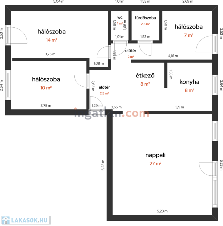 A lakás légkondicionált, vízórás, tágas, jó elosztású, egy erkéllyel és 2 franciaerkéllyel rendelkezik.