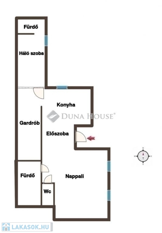 Két szoba, két fürdőszoba + külön wc és gardróbszoba.