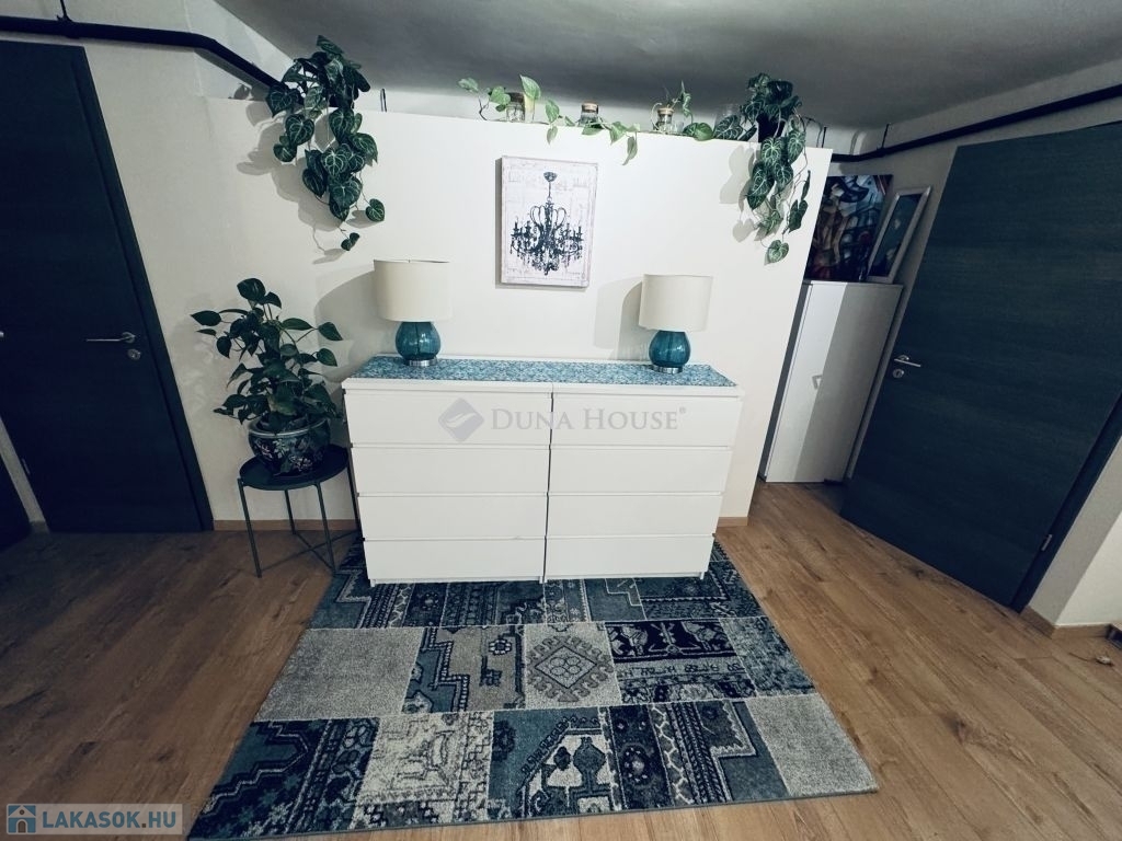 A mini loft emeleten az egész felvezető lépcső, illetve a zárt közlekedő (télikert) a társasház szabályainak megfelelve alakítható. Jelen esetben (videón látható) elszabadult a varázspálca, de bármikor vissza lehet térni a letisztult állapotához.