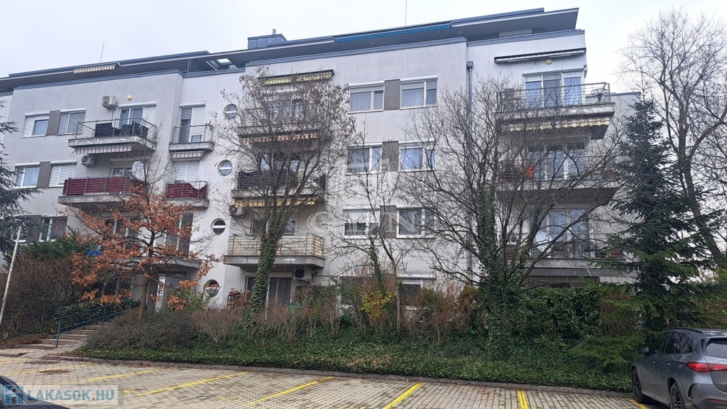 A lakáshoz tartozik egy önálló helyrajzi számmal rendelkező teremgarázs-beálló, amely a vételáron felül 8 millió Ft-ért megvásárolható.