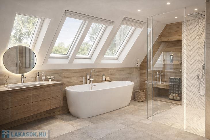 MODERN, 1. EMELETI, KÜLÖN BEJÁRATÚ LAKÁS – ÚJ ÉPÍTÉS – HŐSZIVATTYÚ