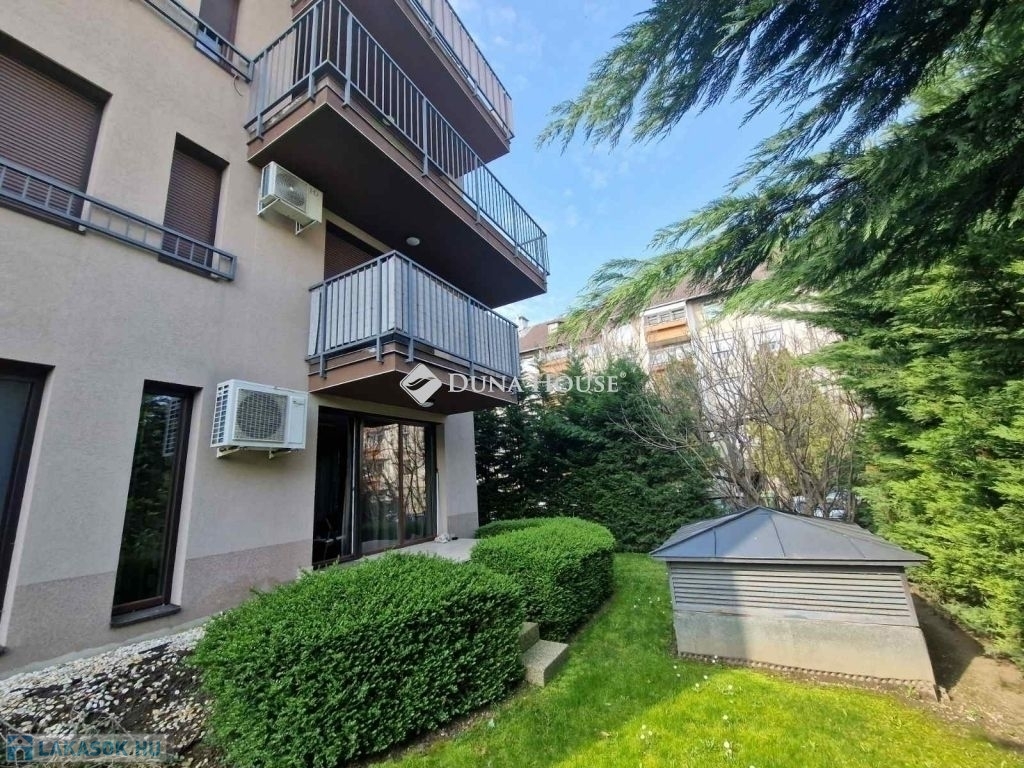 Alsórákos kedvelt, rendezett, társasházakkal kialakított, zöldövezeti részén, csendes mellékutcában eladó egy 2015-ben magas minőségben épült 7 lakásos társasház földszintjén található, tehermentes, 67 m2-es, amerikai konyhás nappali + két külön nyíló hálószobás, dupla klímás lakás terasszal és kertkapcsolattal. A remek lehetőségeket nyújtó kertrész - folyamatosan kertész által gondozott, osztatlan közös tulajdonú, de mivel a lakás közvetlen kertkapcsolata, így csak a lakásban élők használják - kiváló lehetőség kisgyerekkel, háziállattal, vagy azok számára, akik a városi életvitelük kapcsán egy családi házat nem szeretnének fenntartani, de vágynak egy kis saját zöld területre. Vételár részét képezi a gépesített konyhabútor, a teremgarázs beálló és a tároló. A beálló az átlagosnál nagyobb méretű és akár szeparálható is, a tároló pedig közvetlenül a beálló mögött helyezkedik el.