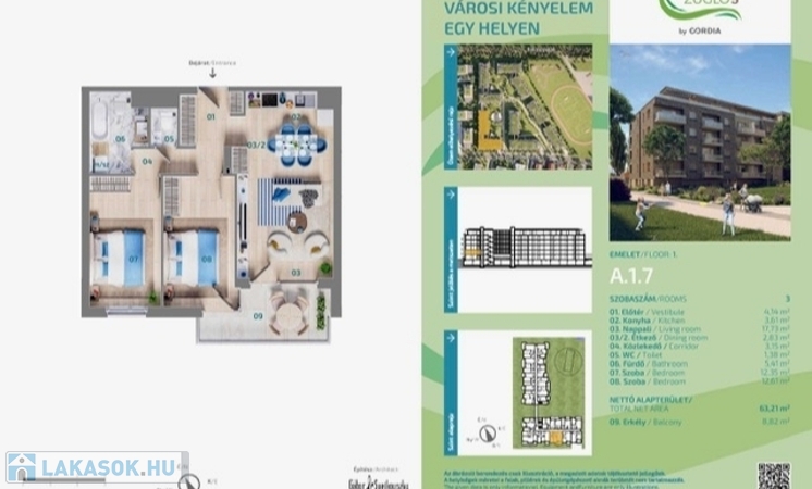- valamint a lakás elhelyezkedését bemutató ábrákat