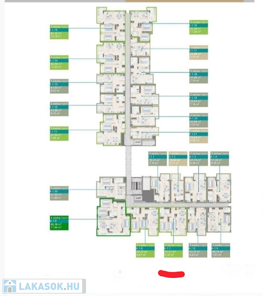 A lakás egy 40 lakásos tömb első emeletén fog elhelyezkedni.