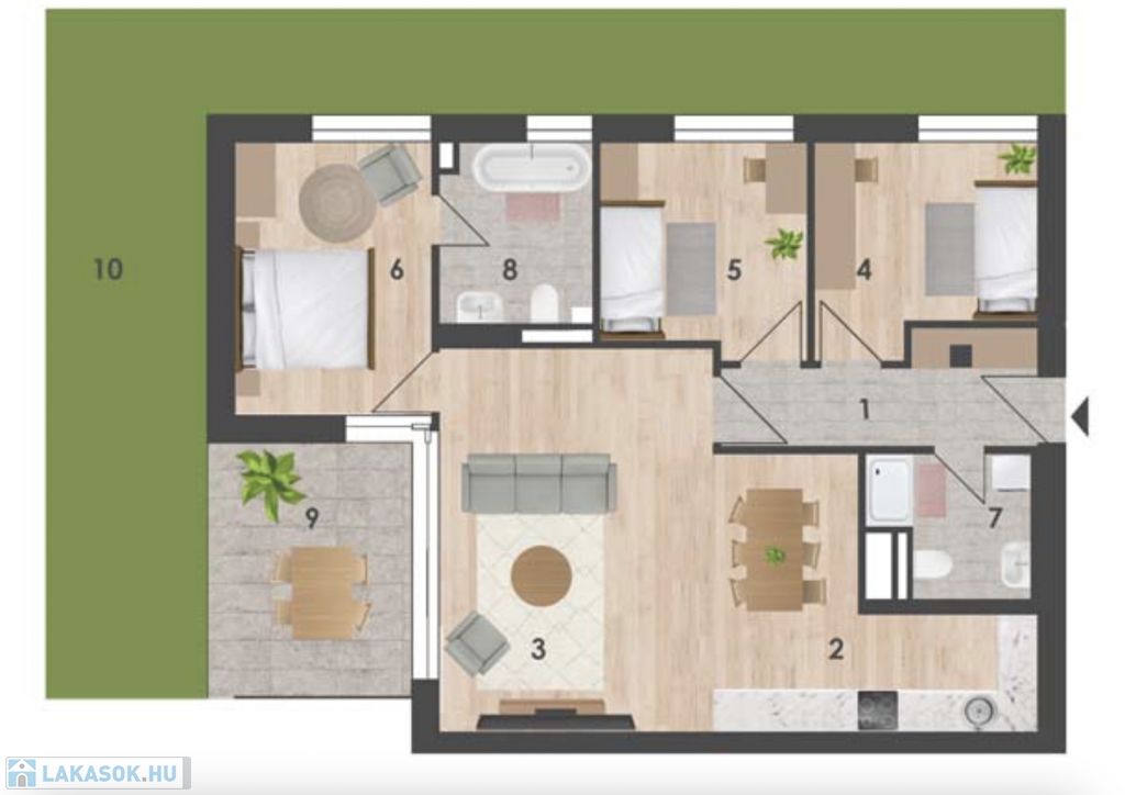 - Csendes, zöld környezet, kiváló infrastruktúra