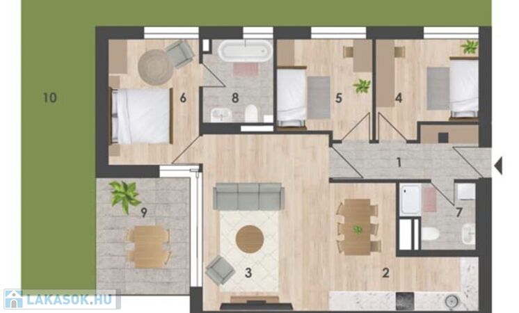 - 1–5 szobás elosztás, 30–130 m²-es alapterülettel