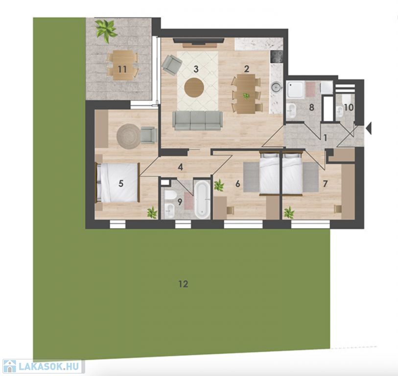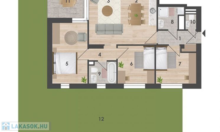 - 1–5 szobás elosztás, 30–130 m²-es alapterülettel