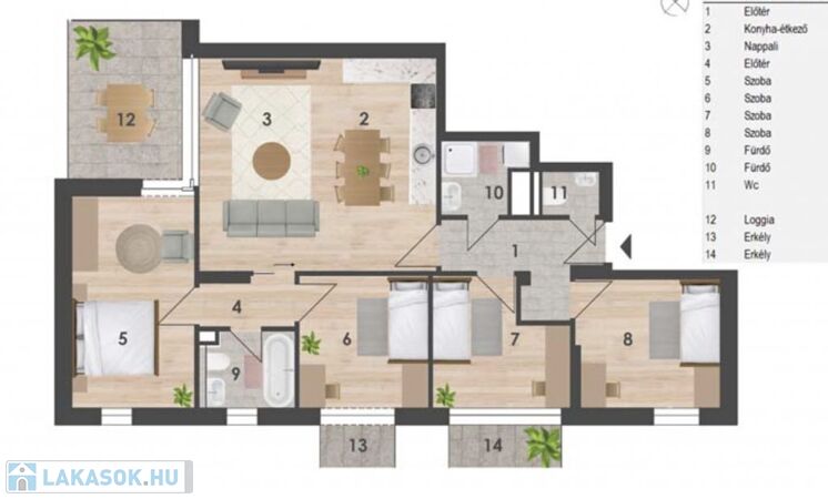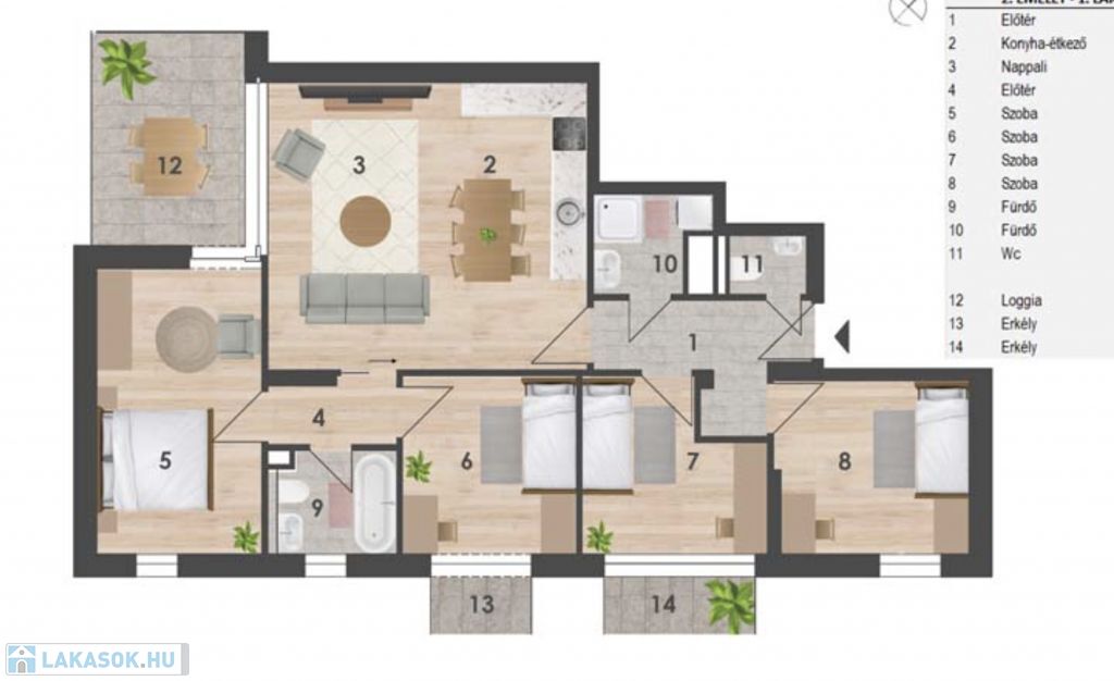 - 1–5 szobás elosztás, 30–130 m²-es alapterülettel