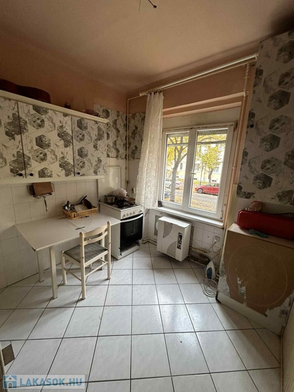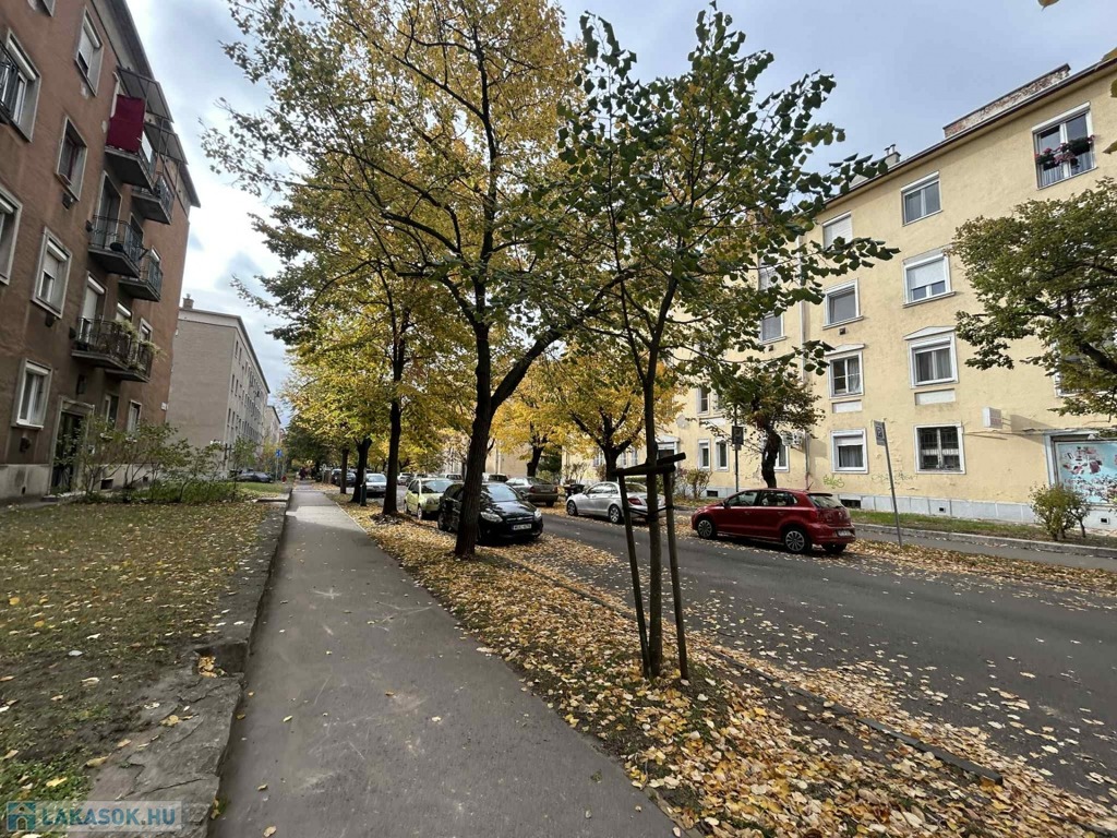 Eladó a XIV. kerületben, a Kalapács utcában, egy 3 emeletes lift nélküli tégla társasház földszintjén egy 41 m2-es, 1+1 félszobás lakás.