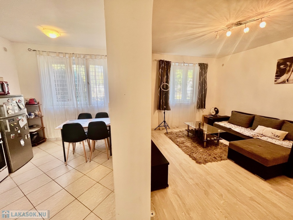 A lakás különlegessége a közvetlen kertkapcsolat, amely nyugodt, madárcsicsergős környezetet kínál a mindennapokban, miközben a társasház kis lakóközössége csendes és barátságos légkört biztosít.
