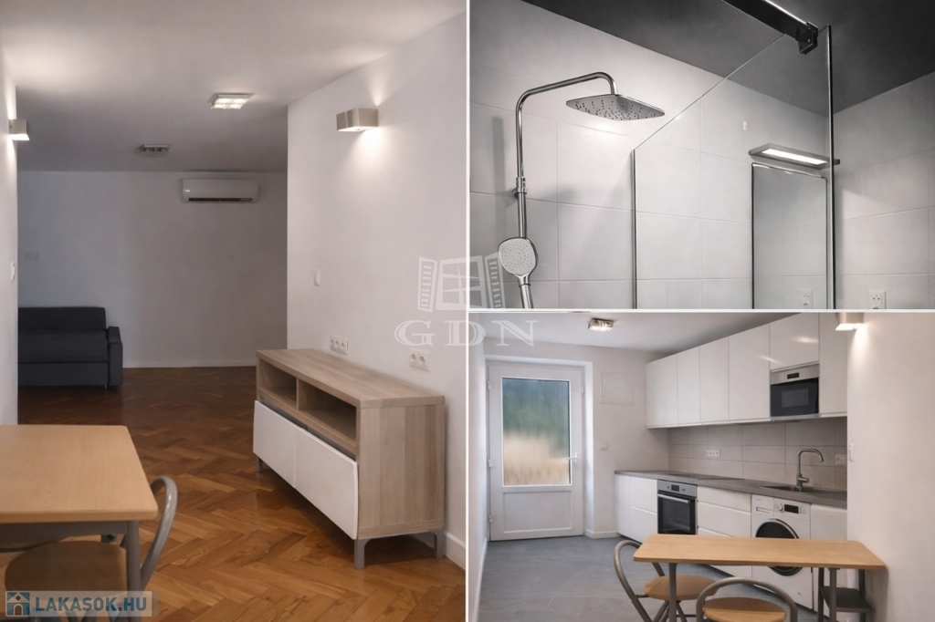 Zuglóban 2szintes 6lakasos teglahazban földszinti, KERTKAPCSOLATOS 36nm-es másfél szobás felújított tusolós elektromos fűtésű lakás eladó.