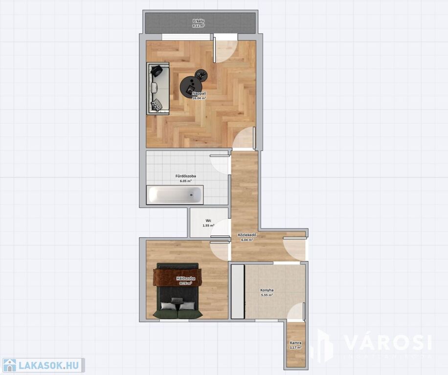 Az ingatlanhoz egy 3 m²-es erkély tartozik, valamint egy különleges adottságként egy nagyméretű, 12 m²-es saját tároló, amely ritkaságnak számít a környéken.