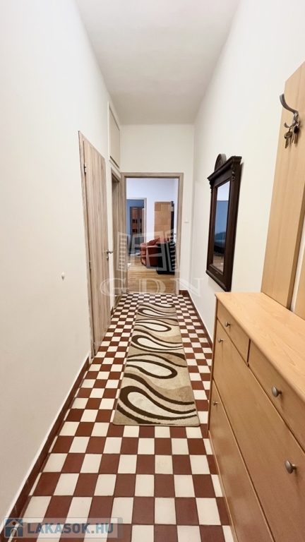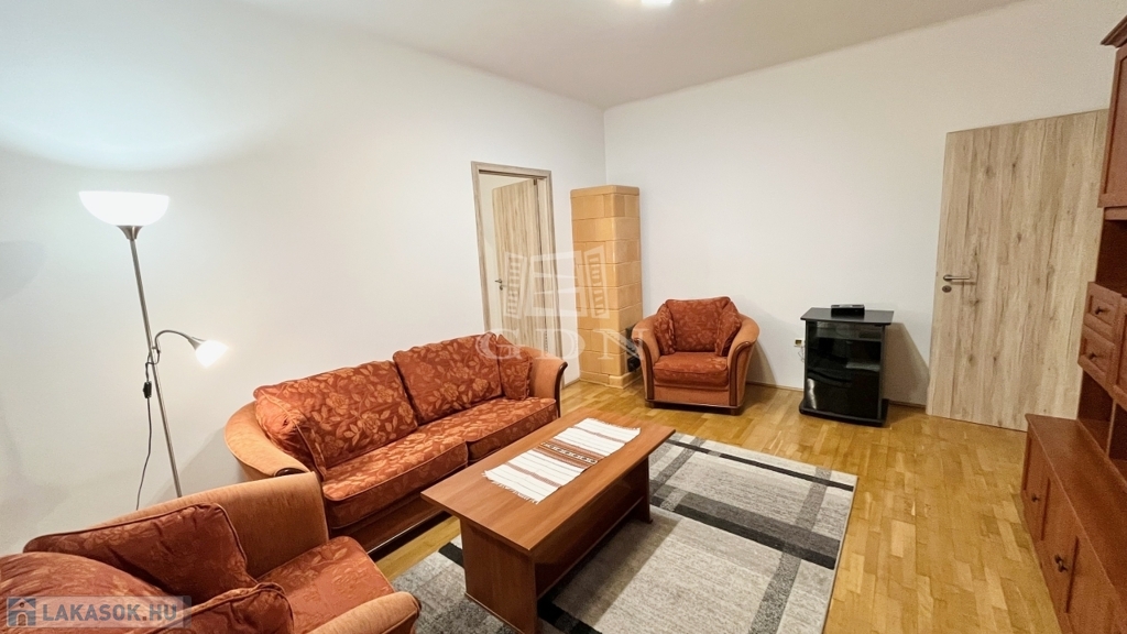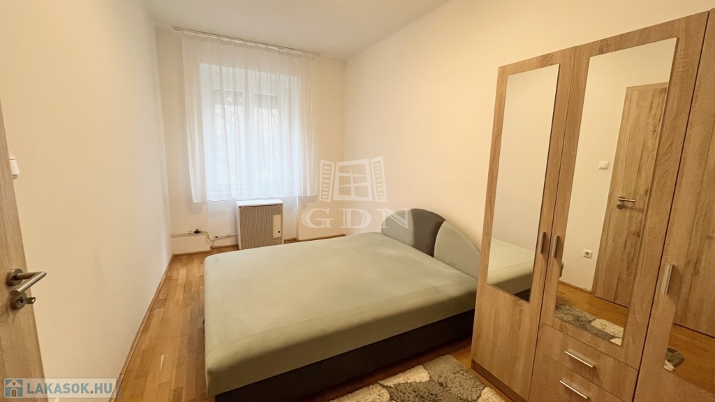 A lakás csendes, belső kertre néz, nyugati tájolásának köszönhetően világos. Elosztása praktikus: két nagyszoba, külön fürdőszoba és WC, hatalmas konyha, valamint kamra is rendelkezésre áll. A lakáshoz saját pince tároló tartozik.