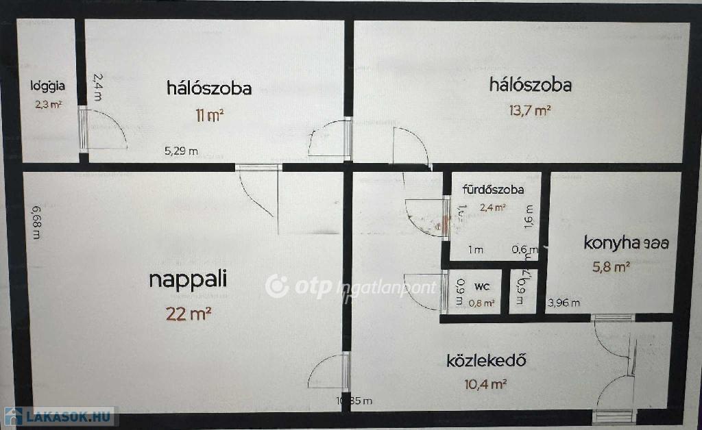 Alapterület: Tágas, jól kihasználható elrendezés.