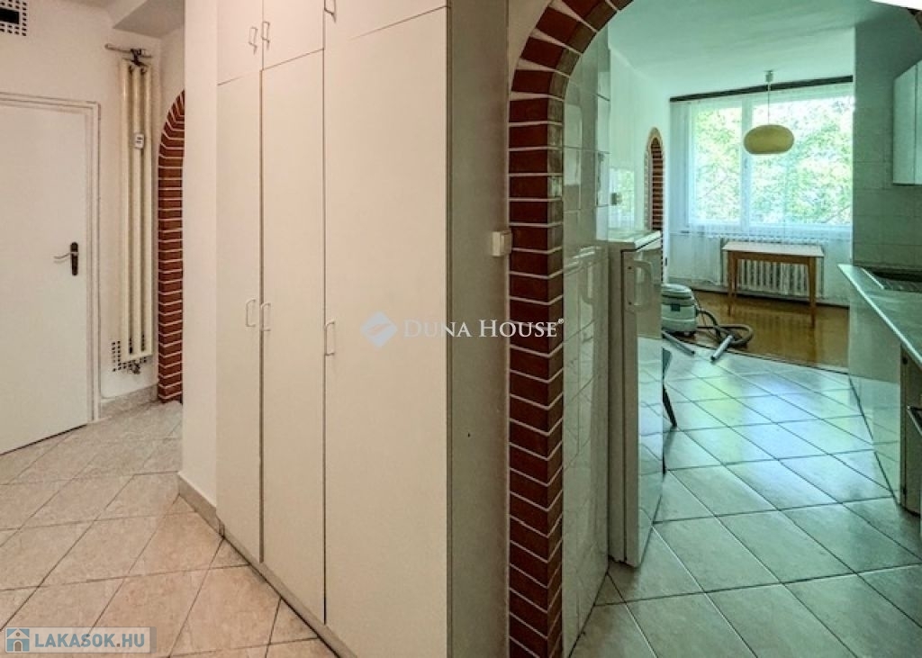 XIV. Törökőr részén, 2. emeleti, 61 m2-es, nagy teraszos lakás egy liftes, téglaépítésű társasházban eladó. Az ingatlanba lépve a közlekedő bal oldalán egy WC és kamra, szemben pedig egy kádas fürdőszoba található, melyből átjárás nyílik egy tágas, 20 m2-es szobába, melynek ablakai a ház gyönyörű, fákkal teli kertjére néznek. Ebben a látványban gyönyörködhetünk a lakás teraszáról is, ahol kényelmesen fogyaszthatjuk el reggeli kávénkat vagy zavartalanul élvezhetjük a nyári napsütést.