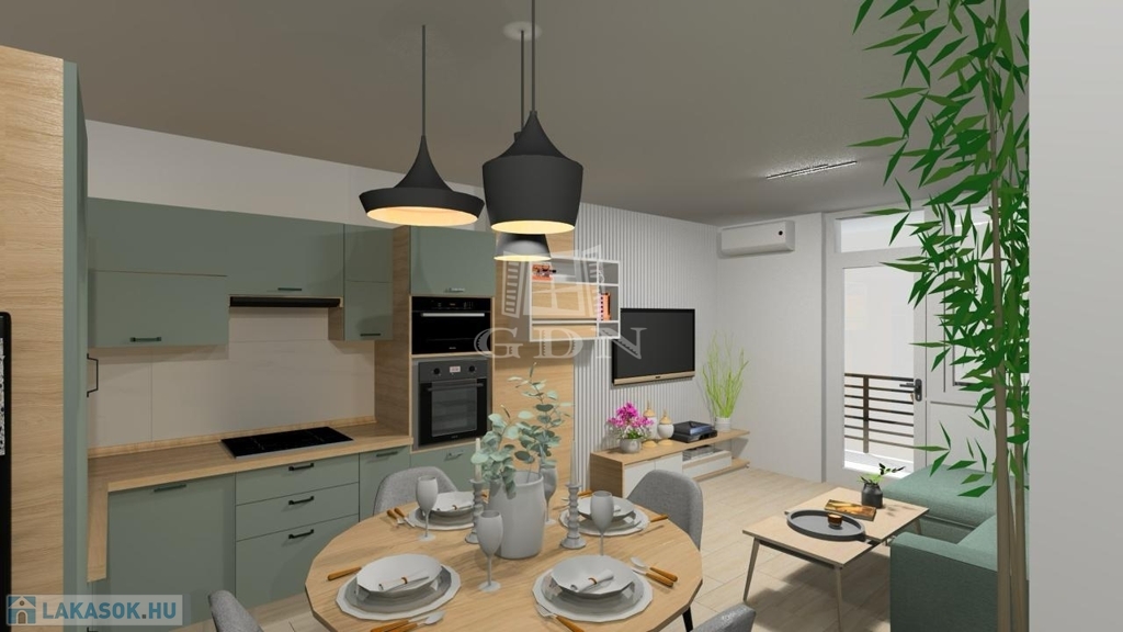 - gépesített konyha, beépített mikróval, sütővel, főzőlappal és hűtővel, szagelszívóval