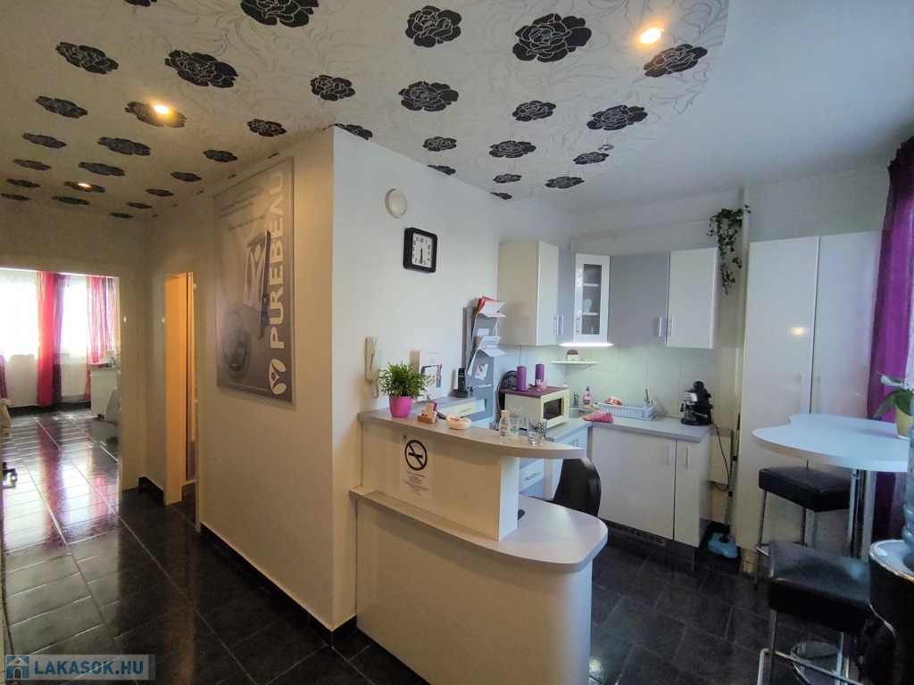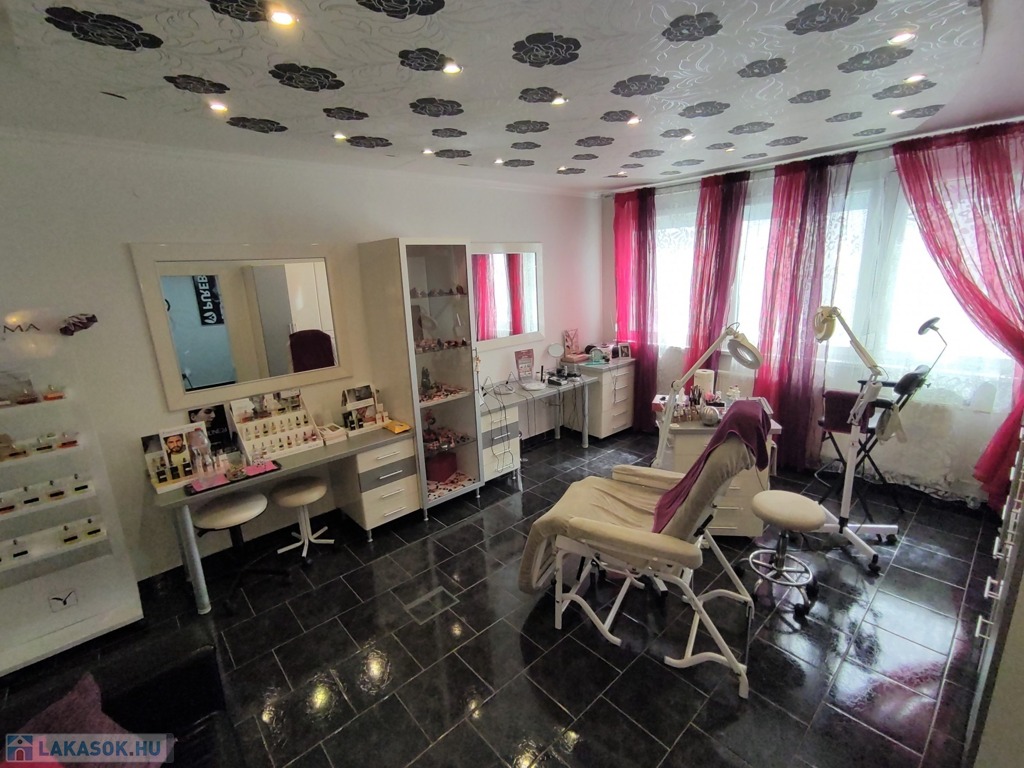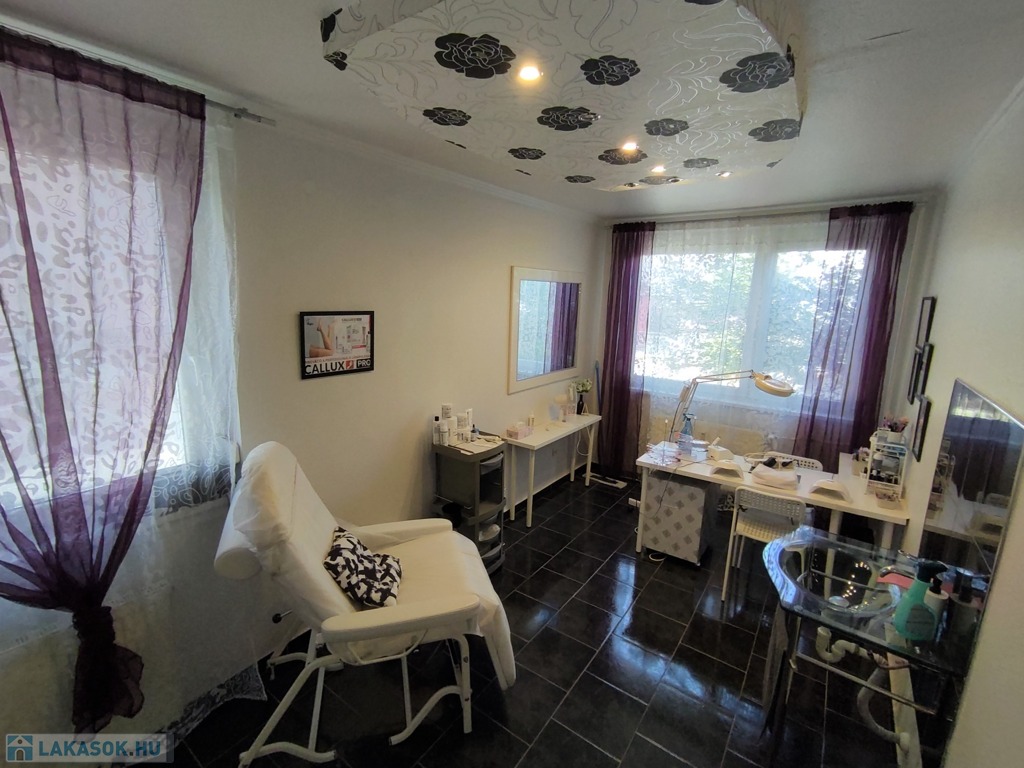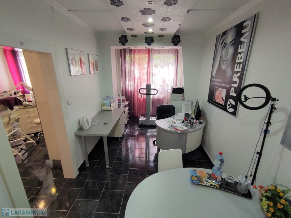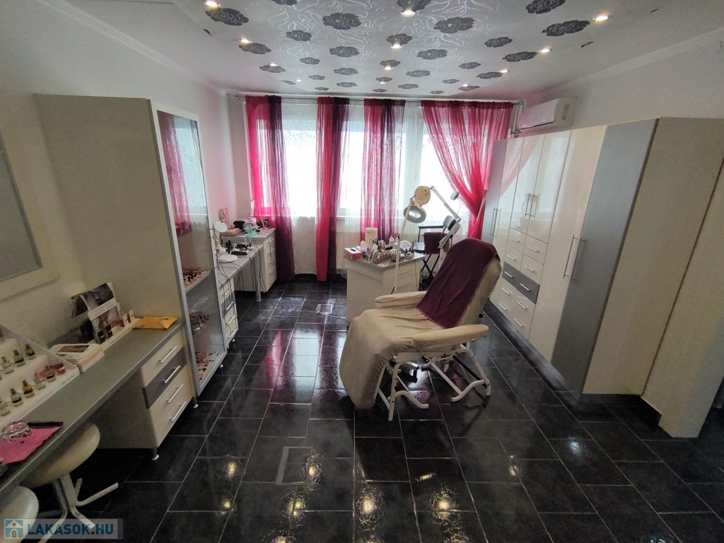 A lakásba a biztonsági bejárati ajtón juthatunk be. A nyílászárók mindenhol modern típusú műanyagra lettek cserélve. A tulajdonos az évek alatt több mindent felújított, klímával felszerelte az ingatlant. A szobák elrendezését tekintve kitűnő elosztásúak, a nappali DK-ti tájolású. Az ingatlan jelenleg szépségszalonnak lett kialakítva (akár gépesítve is átvehető), de lakásnak is alkalmas. Igényes járólap burkolattal lett kialakítva minden helyiség. A bejárattól az ablakos tágas 9,25 nm-es konyhába érkezünk meg. A 4,5 nm-es közlekedőn keresztül jutunk az ingatlan többi részébe. Az igényes járólap burkolatú előszobából jobbra a Wc és a 2,5 nm-es zuhanyzós fürdőt találjuk. Innen nyílik a 14 nm-es, nagy ablakos csempe burkolatú szoba nyílik. A közlekedőn egyenesen haladva a szintén járólap burkolatú, több mint 22 nm-es nappaliba lépünk, innen nyílik a 13 nm-es kisebb szintén járólap burkolatú szoba, ami eredetileg erkélyes volt, de beépítették. Az üzlethelyiség/lakás nagyon szép állapotú, többféle képpen át lehet alakítani. A lakás a D-i, DK-i fekvése miatt kedvező fényviszonyok jellemzik.