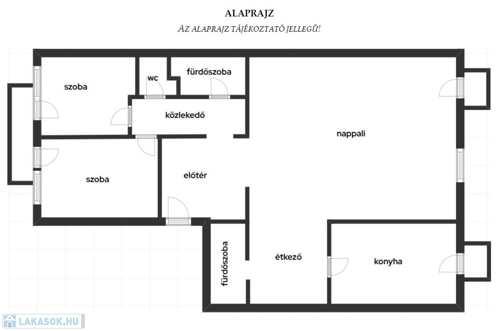 A 77 m²-es alapterület, a két fürdőszoba és a külön WC bérbeadás szempontjából is kifejezetten előnyös. Az alaprajz átalakítható, így akár 3 hálószobás lakás is kialakítható.