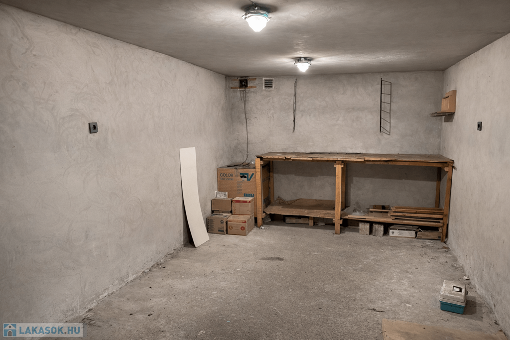 Az ingatlanhoz tartozik egy 16 m²-es, jól szigetelt, száraz pincehelyiség.