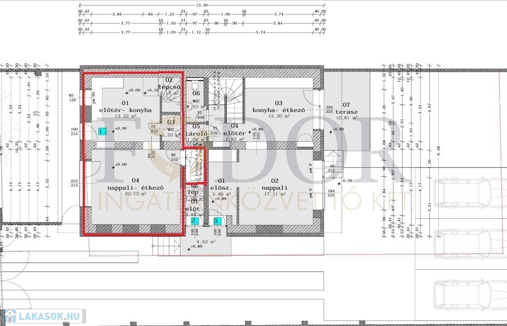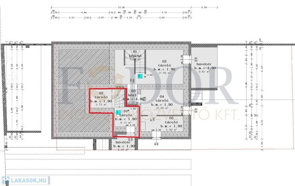 • Extrák: saját pincerész, tároló, lépcsőház (össz.: 10,71 m²)