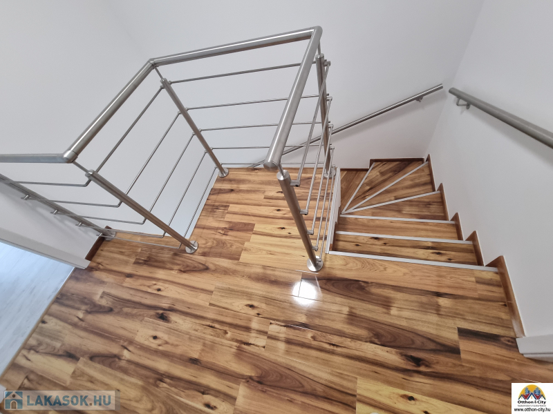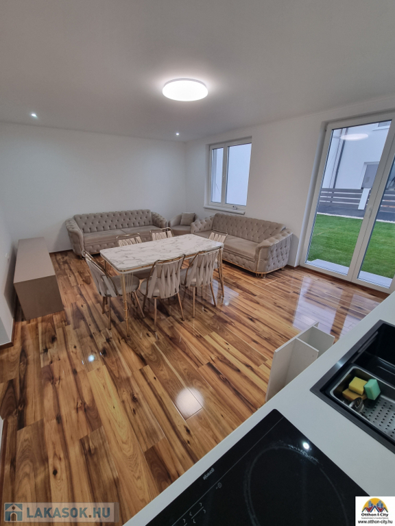 XIX.kertvárosban eladó egy 140 nm-es belső kétszintes,4 szobás,duplakomfortos, garázsos kertkapcsolatos új lakás,a kert mérete 80 nm.Az ingatlan egy négylakásos társasház egyik lakása,egy nagy teleken.