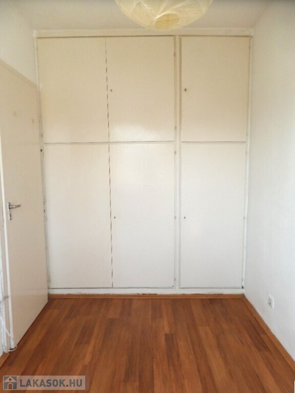 A hálószobában tágas, polcos és fogasos beépített gardrób szekrény segíti a tárolást.