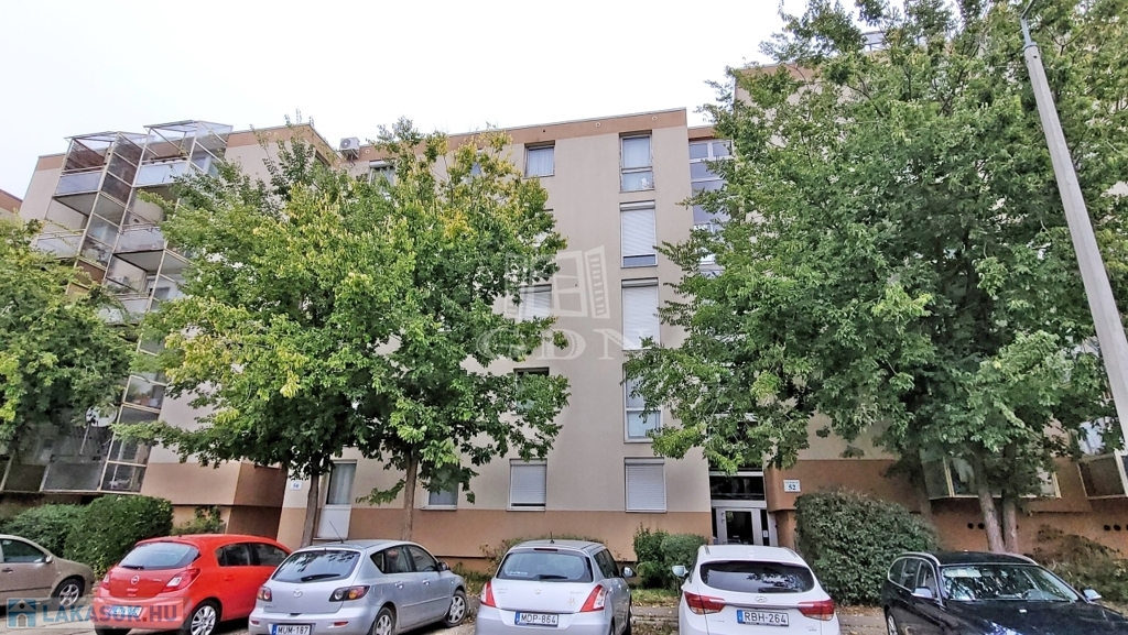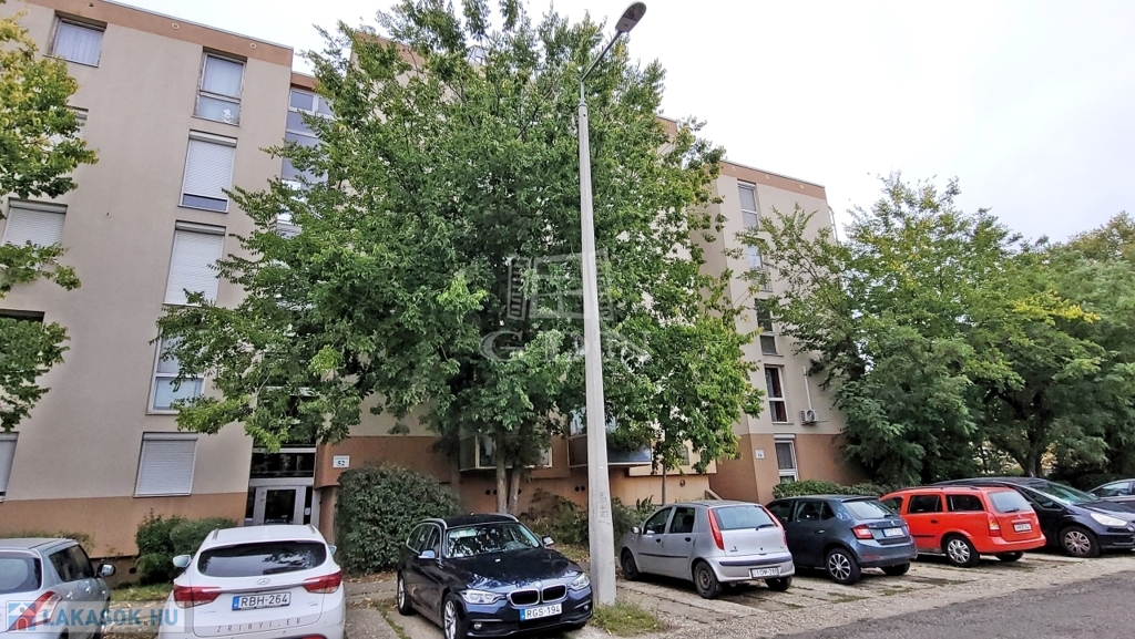 A nappali az Ady Endre út felé néz, a két hálószoba az épület mögötti csendes parkra.