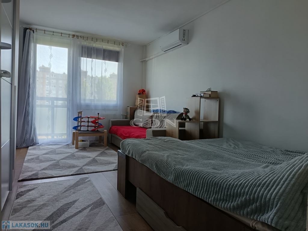 Jelenleg 2 hálószoba, plusz amerikai konyhás nappali felosztású a lakás. Erkéllyel rendelkezik! A fürdőszoba külön álla mosdótól.