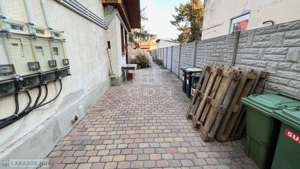 A lakáshoz közvetlen kertkapcsolat tartozik, a közös udvarban kizárólagos használatú kertrész biztosít kellemes pihenési lehetőséget. Emellett egy 9 m²-es, saját, zárható tároló is a lakás részét képezi.