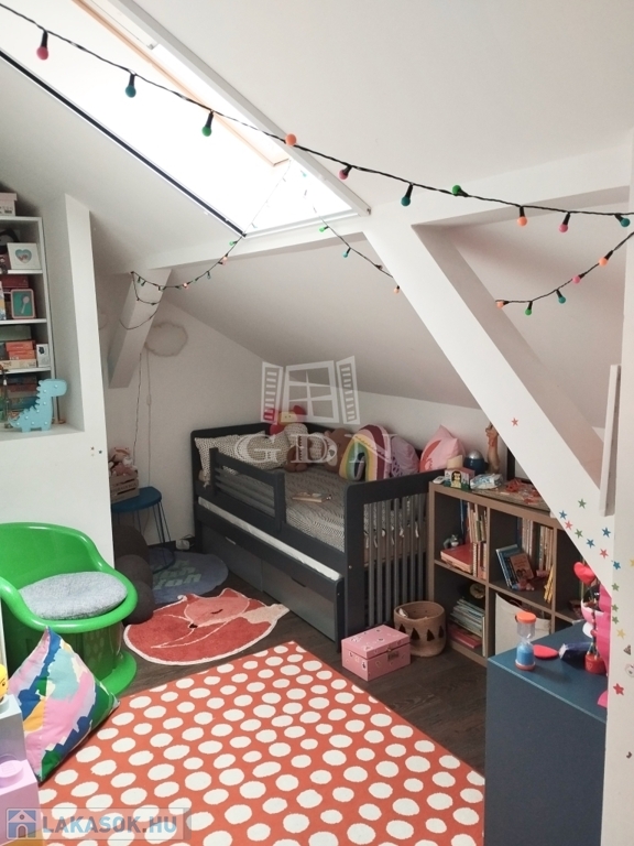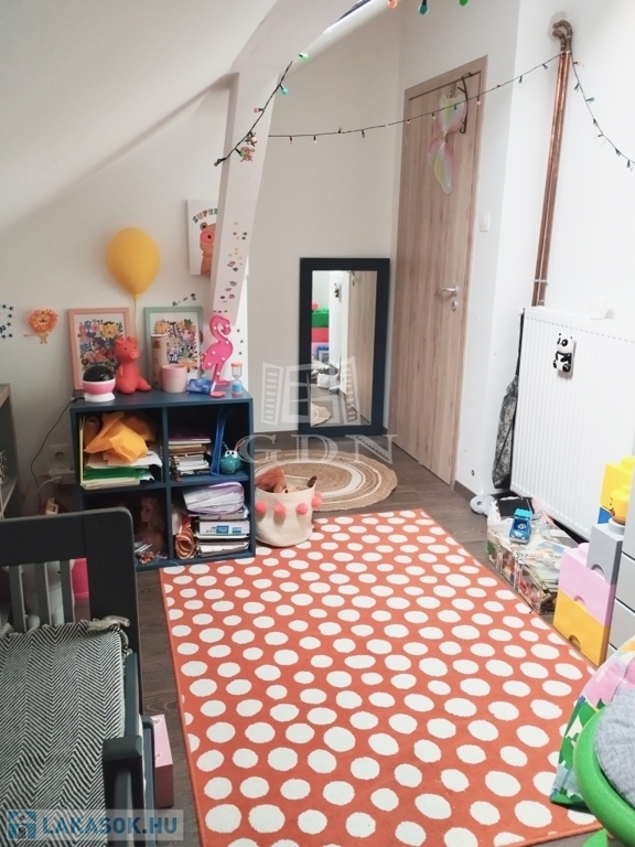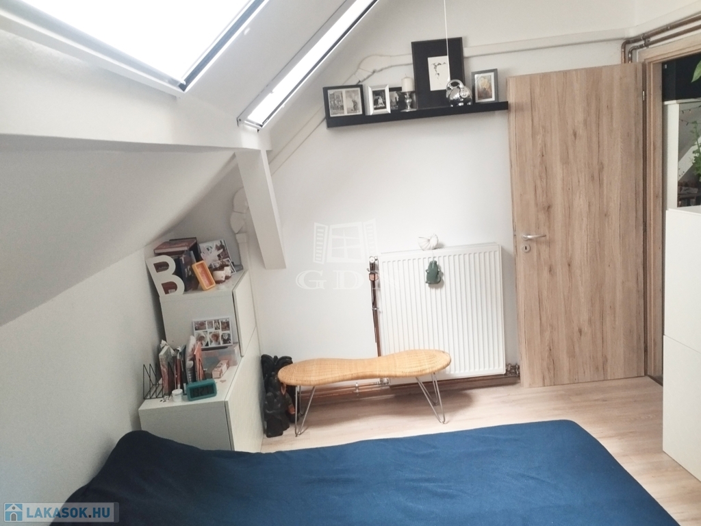 A lakás alsó szintjén amerikai konyhás nappali, valamint külön fürdőszoba és WC található, az emeleten pedig 2 tágas szoba került kialakításra.