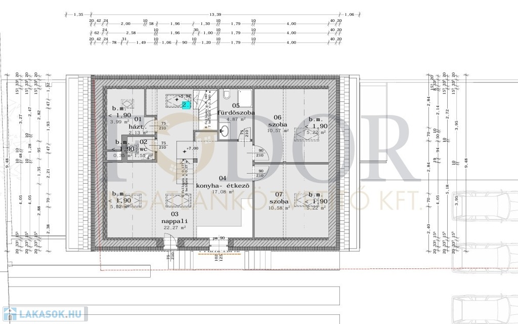 • Elosztás: amerikai konyhás nappali + 2 szoba, fürdőszoba, külön wc, háztartási helyiség