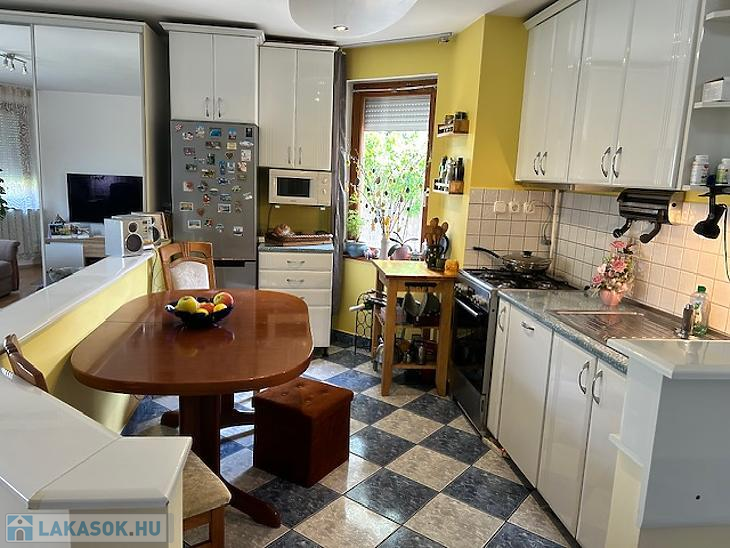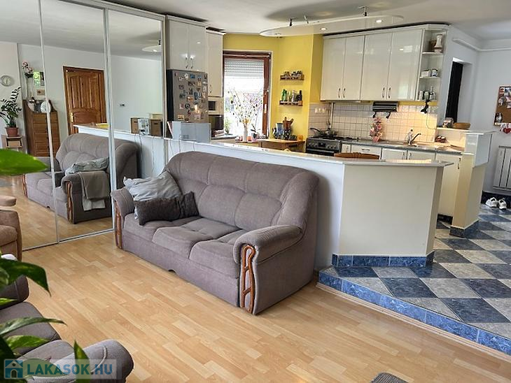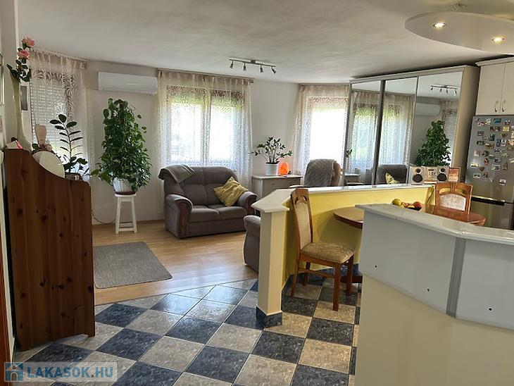 Amerikai konyhás nappali, 3 szoba, fürdőszoba és kamra áll rendelkezésre. A lakás 2022-benn fel lett újítva, ekkor új gázkazánt szereltek fel, fém redőnyős műanyag hőszigetelt nyílászárókat és klíma berendezéseket. A burkolatok minden helyiségben újszerű állapotúak. A konyhabútor a vételár részét képezi.