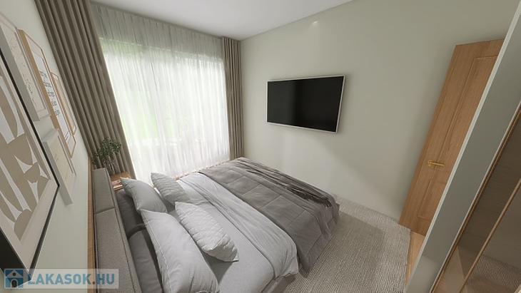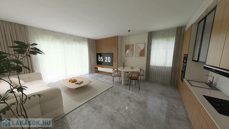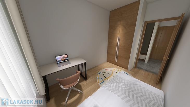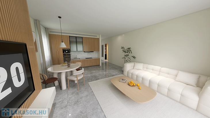 Egy tágas amerikai konyhás nappali, 3 háló, fürdőszoba és egy 9 m2-es erkély kerül kialakításra.