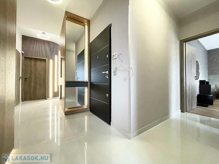 Tartozik a lakáshoz egy 7 m2 és 23 m2-es terasz, illetve egy saját tároló. Igény esetén 3 db garázs vásárolható a lakáshoz, 7.000.000 Ft/ darab. A garázsoknál a napelemrendszer vezetékrendszer már ki vaépítve.