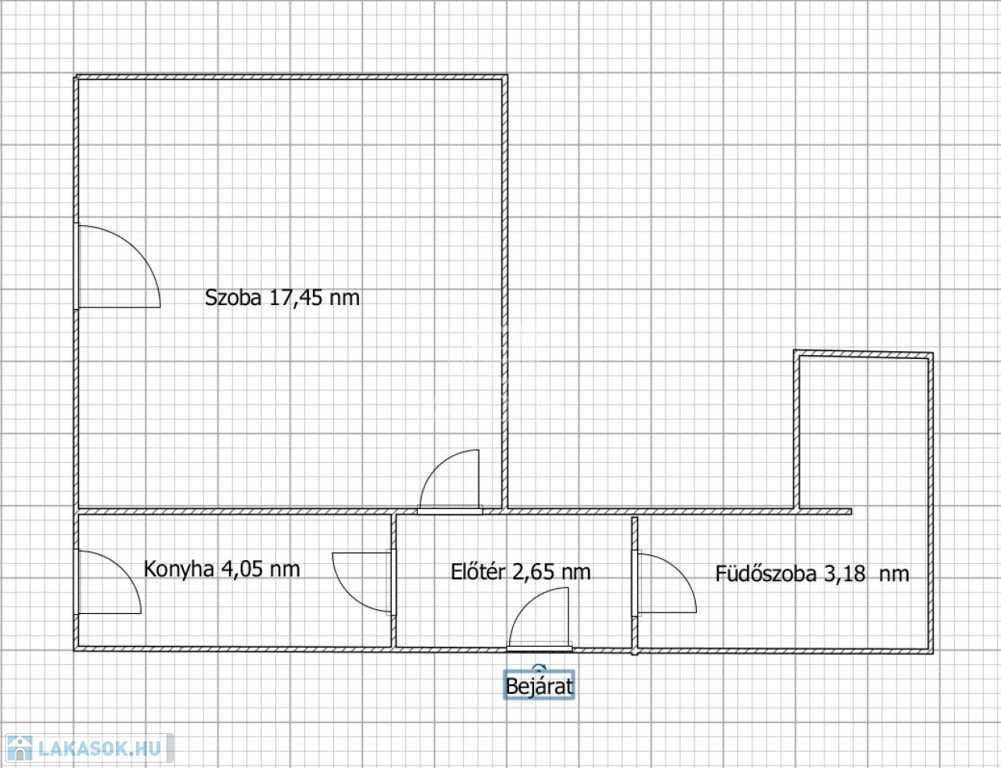 Az épület az 1960-as években készült, 10 cm vastag EPS hőszigeteléssel és vasbeton födémmel rendelkezik. Műszaki állapota jó, esztétikai szempontból átlagos. Az ingatlan elrendezése magában foglal egy 17,5 nm-es lakóteret, egy 4 nm-es konyhát, egy 3,2 nm-es fürdőszobát, valamint egy 2,65 nm-es előteret.